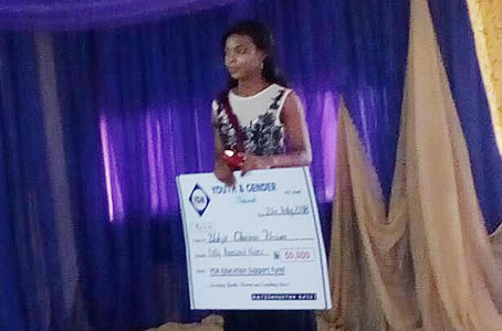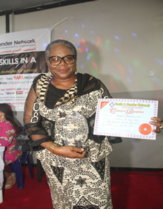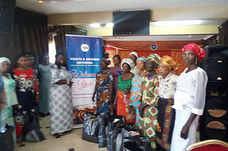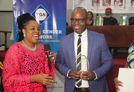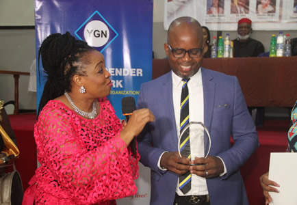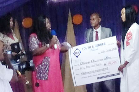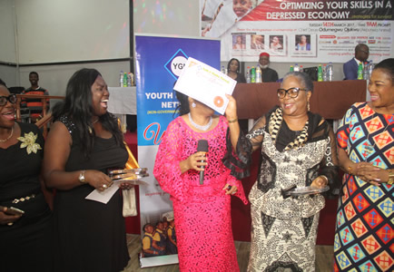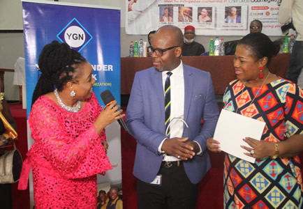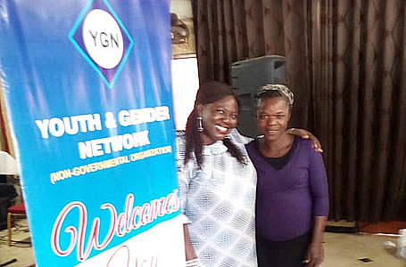 YGN administrator,Modupe Albert pose for photograph. |