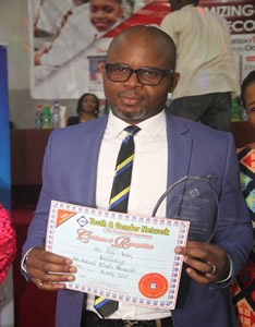 Mr. Ehi - Iden proudly pose with his award |