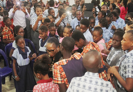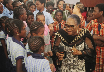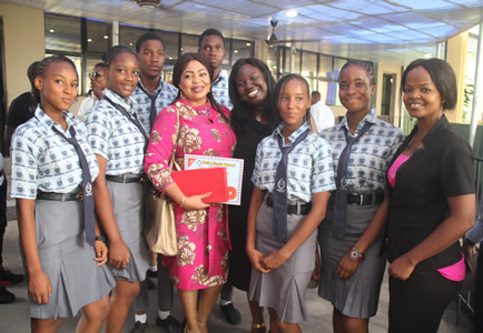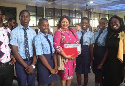 Nollywood Icon, Jennifer Eliogu pose in group photograph with Students and Teachers. |