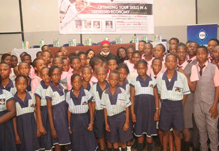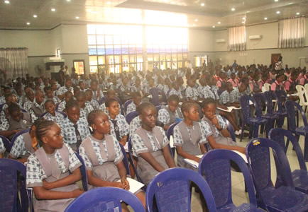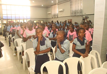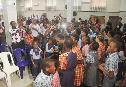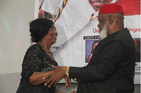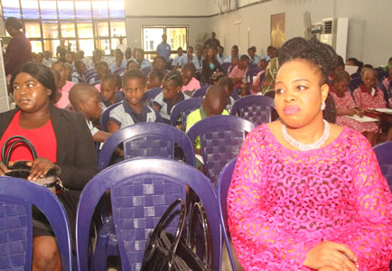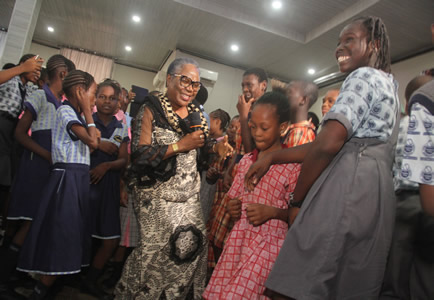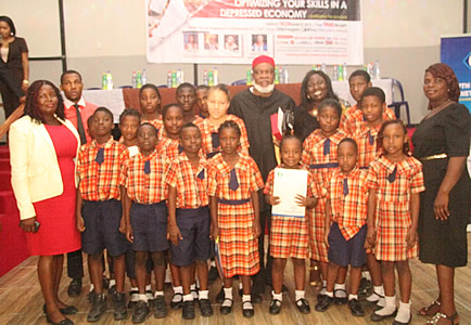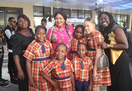 | Mrs. Ufodike with Chioma Nwambu | Chief Ojukwu pose with various schools and guests in attendance. |