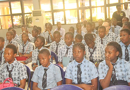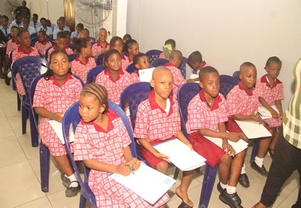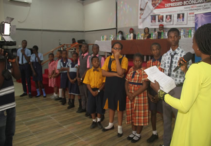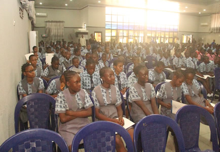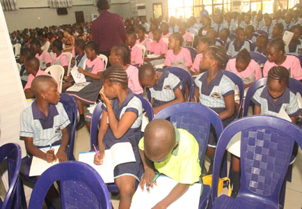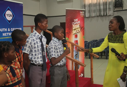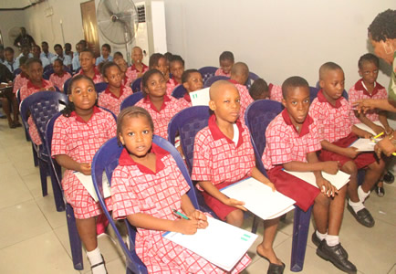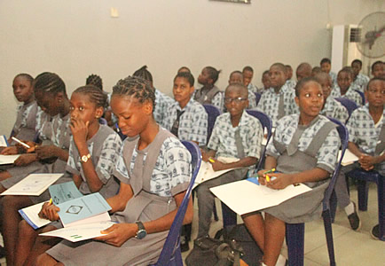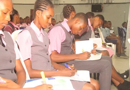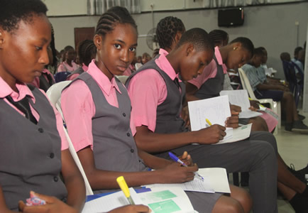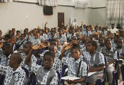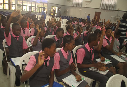 Quiz section being anchored by Nneka Okonkwo with selected students. |