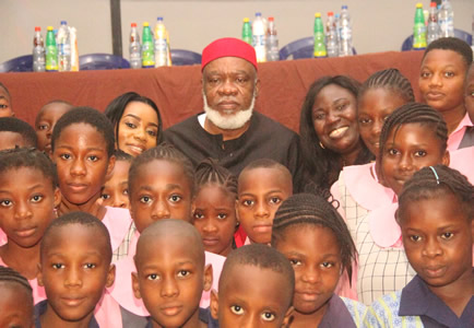 Chief Ojukwu pose with various schools and guests in attendance. |