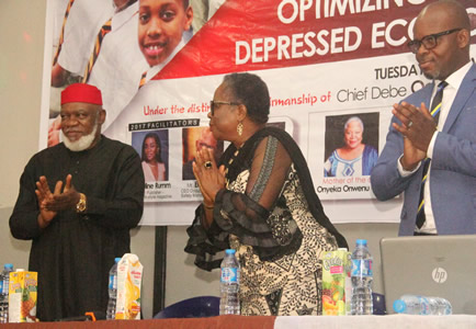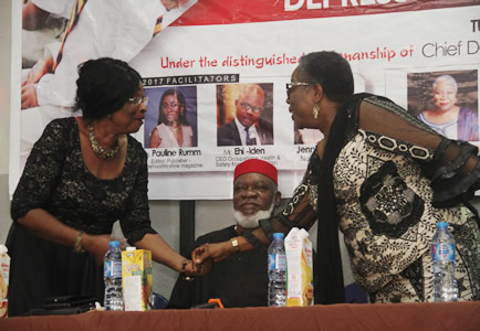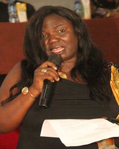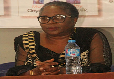 Lady Onyeka Onwenu listening with rapt attention to other speakers. |